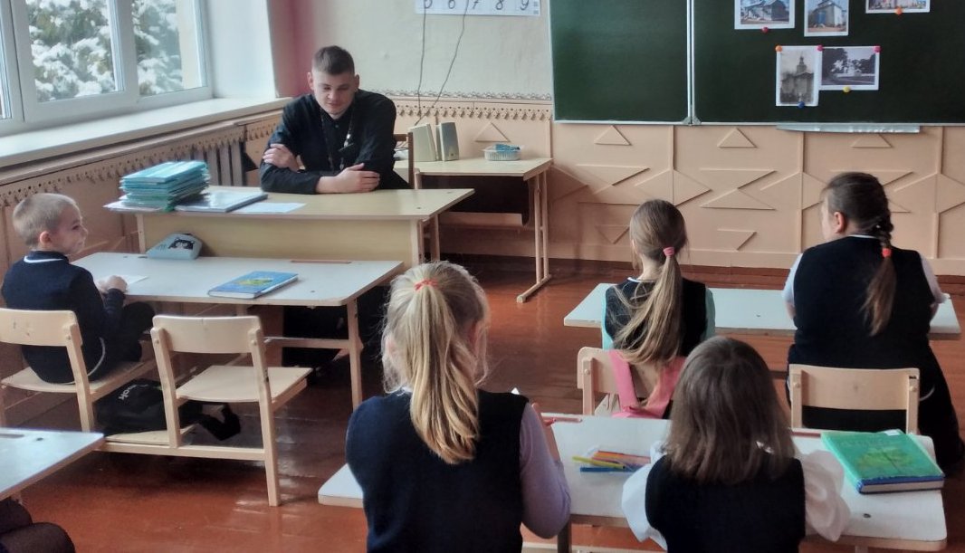 Иерей Геннадий Белоус рассказывал ученикам младших классов Зубковской школы о православных традициях