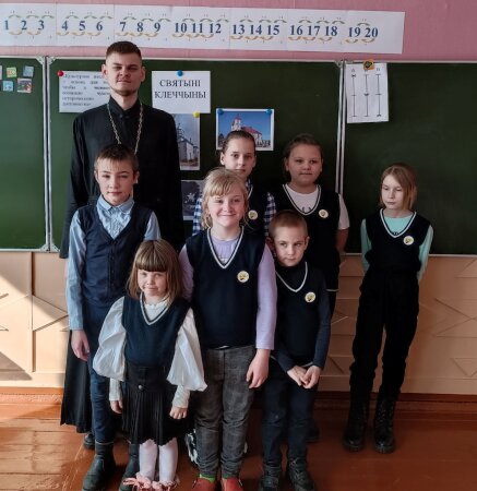 В рамках занятий факультатива "Основы православной культуры" благочинный Клецкого церковного округа иерей Геннадий Белоус побеседовал с учащимися 1-4 классов Зубковской СШ.