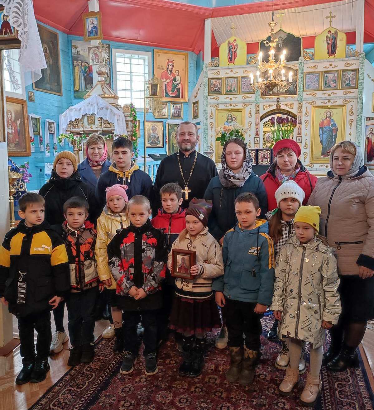 Ребята местной школы с удовольствием посещают церковь в рамках факультативных занятий по православной культуре, и батюшка, видя любознательность детей, с удовольствием отвечает на все их вопросы. Интересным получился диалог о православных Праздниках, которые верующие христиане отмечают в эти апрельские дни: День памяти благоверной Софии Слуцкой, Благовещение, Вход Господень в Иерусалим (Вербное воскресенье) и приближающуюся Пасху.
