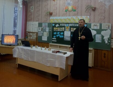 Протоиерей Евгений Вечорко беседовал с учащимися Лазовичского УПК на тему «День Ангела»