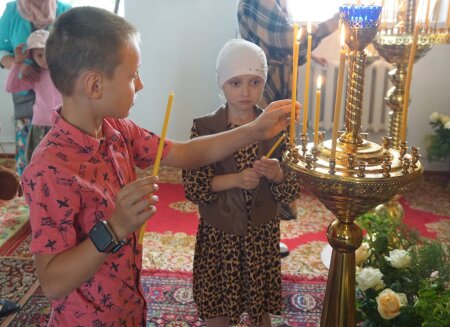 Его Преосвященство встречали прихожане церкви с караваем хлеба и букетами цветов, выложив цветочный ковер от самого входа на территорию городского кладбища, и до церкви.