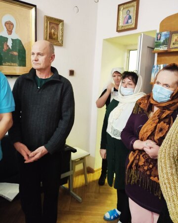 Духовник сестричества святой блаженной Валентины Минской иерей Геннадий Белоус исповедает и причащает тех, кто готовится к Таинствам, тут же. Молятся священник и сестры милосердия о врачах и медицинском персонале больницы, дабы Господь укрепил их силы, даровал мудрости по отношению к немощным, нуждающимся не только в медицинском лечении, но и в беседах с больными людьми.