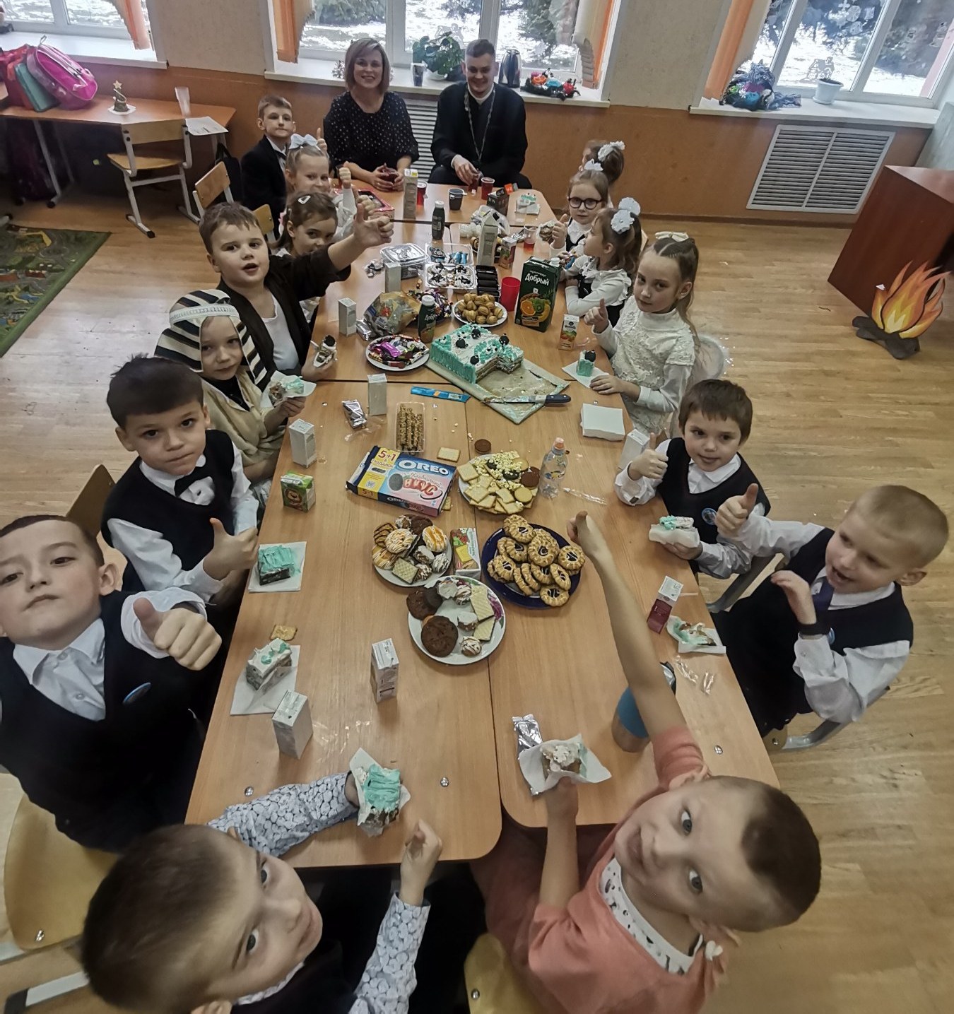 Вот и встреча отца Геннадия с ребятами в тот день завершилась праздничной трапезой, потому что батюшка приехал в гости не с пустыми руками, а с большим тортом!
