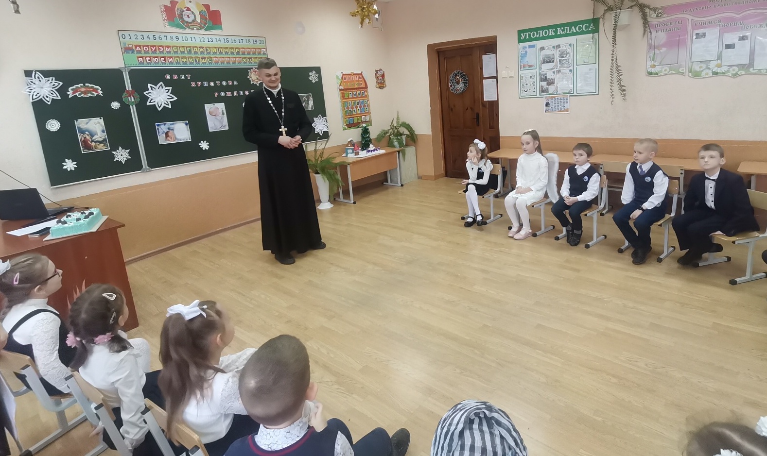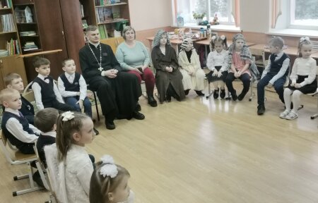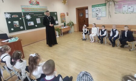 Иерей Геннадий Белоус поздравил учащихся факультатива "Основы православной культуры" СШ №1 г.Клецка с Рождеством Христовым