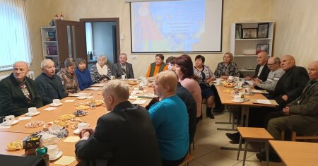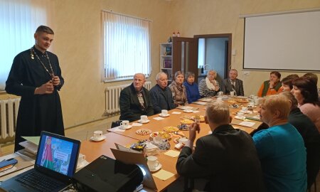 Представители Клецкой районной организации ветеранов с интересом слушали рассказ благочинного о православных церквях, действующих в районе, их настоятелях, а также святынях, которым можно поклониться.