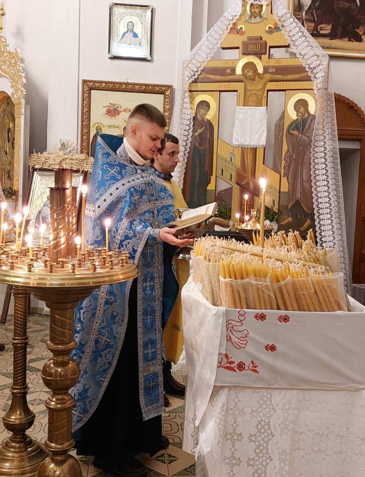 На Всенощном бдении благочинный Клецкого церковного округа иерей Геннадий Белоус освятил Сретенские свечи.