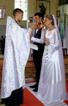 – Брак – это союз двух людей, мужчины и женщины. Самая первая заповедь, данная людям в Раю, касалась именно этого союза: "И благословил их Бог, и сказал им Бог: плодитесь и размножайтесь, и наполняйте землю, и обладайте ею, и владычествуйте над рыбами морскими, и над птицами небесными, и над всяким животным, пресмыкающимся по земле (Быт.,1:28)". Христос позже уточняет: "посему оставит человек отца и мать и прилепится к жене своей, и будут два одною плотью (Мф., 19:5)". Таким образом, брак с точки зрения христианства это не просто союз двух людей, а своего рода слияние двух личностей, образующих нечто новое. Самый простой пример – это изготовление бронзы. Чтобы ее получить, необходимо сплавить медь и олово, но из бронзы обратно их получить практически невозможно. Семья – это Малая Церковь, обретение спутника, который поможет дойти по непростому жизненному пути до Царствия Небесного. А такой союз невозможен без взаимной любви. Апостол Павел так говорит: "Так должны мужья любить своих жён, как свои тела: любящий свою жену любит самого себя…Так каждый из вас да любит свою жену, как самого себя; а жена да боится своего мужа. (Еф., 5:28,33)". И речь идёт о страхе не прогневить мужа. Не о боязни деспотичного супруга, а о страхе обидеть любимого человека. Обязательным признаком семьи являются дети, минимум трое. Как уже говорилось выше, Бог благословил брак, сказав "плодитесь и размножайтесь". Плодитесь – это рождение детей, размножайтесь – это увеличение числа людей. При союзе двух людей увеличение населения возможно только при рождении минимум трех детей у одной пары. Таким образом, Венчание – это Таинство, которое совершается священнослужителем над мужчиной и женщиной, выявившими желание о заключении такого союза и выразившими соответствующие намерения перед Церковью и священником. Это – союз любящих и уважающих друг друга мужчины и женщины, идущих по жизненному пути рука об руку, находящими компромисс в разных вопросах, являющихся заботливыми родителями нескольких детей и строящих Малую Церковь.